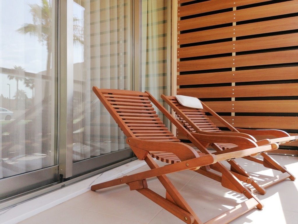 - Varanda com mesa de refeições e cadeiras de relaxamento