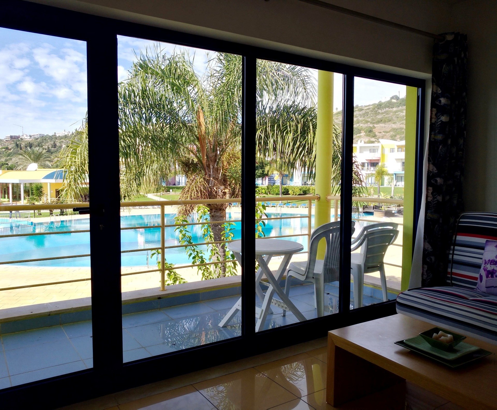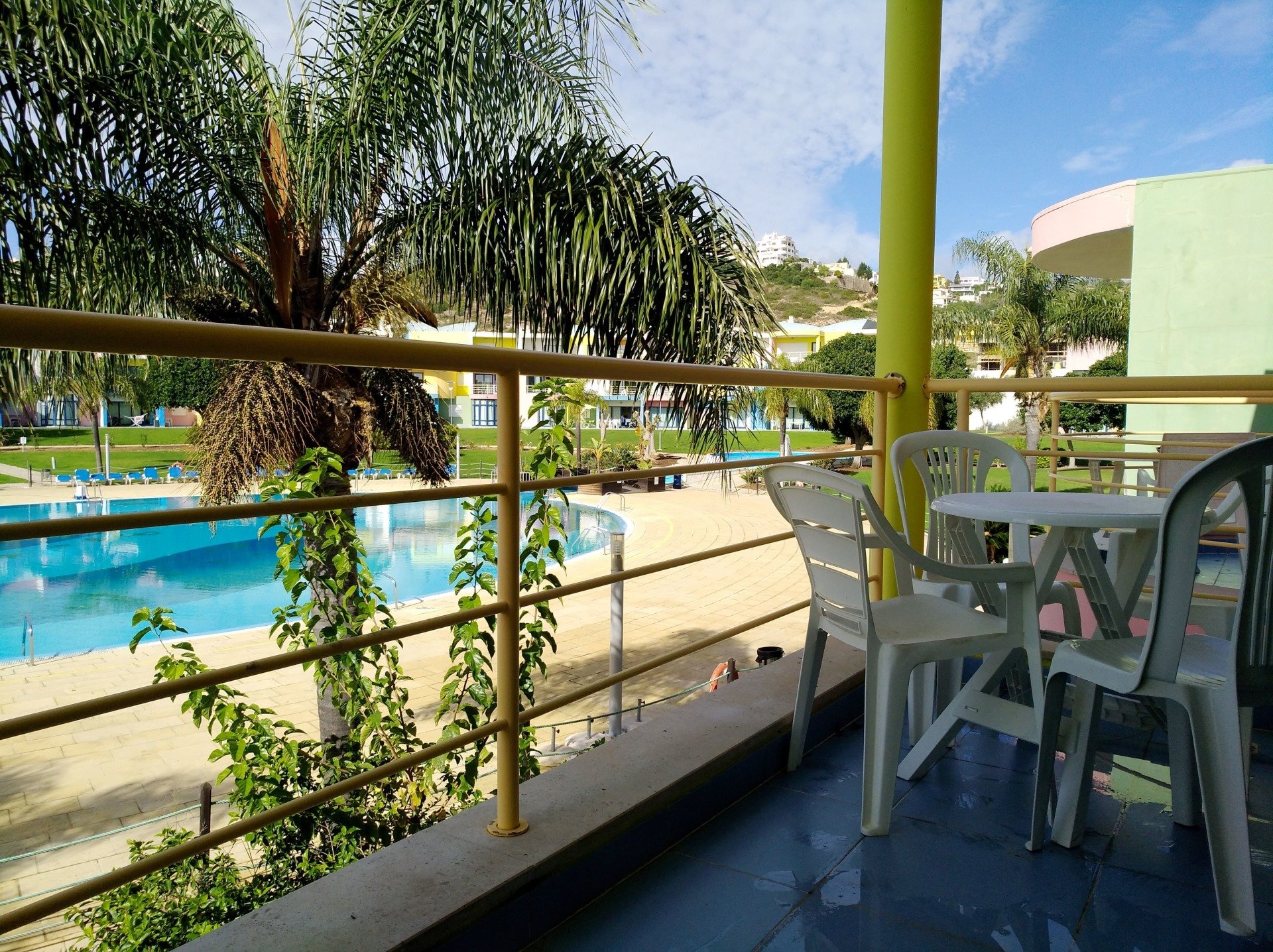 Varanda orientada para a piscina e paisagem