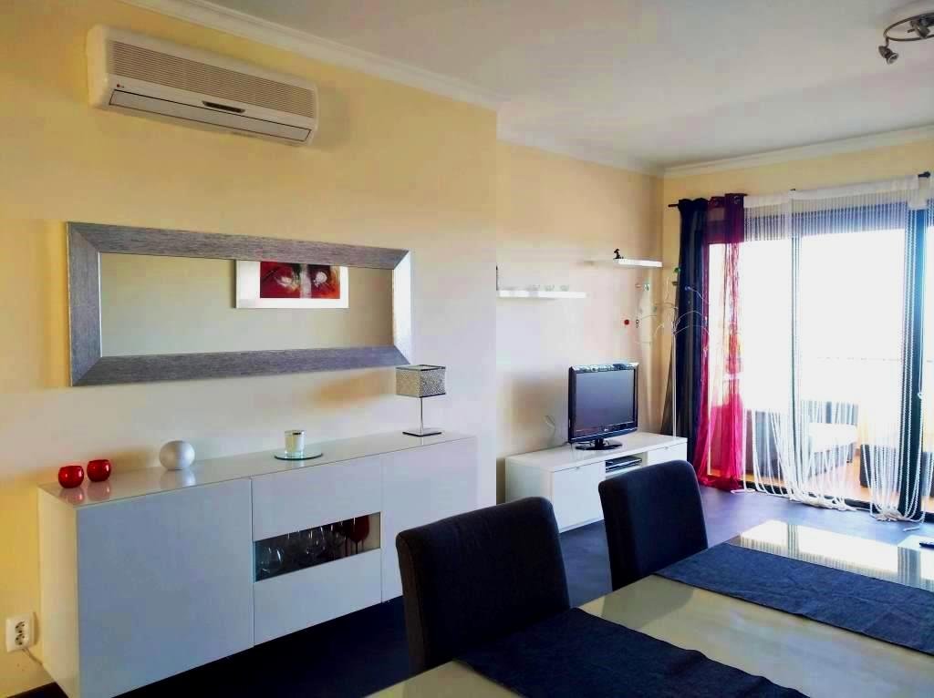 O apartamento T1 para 4 pax, fica localizado num condomínio privado com piscina de adultos e outra de crianças, com um parque infantil. A unidade dispõe de: